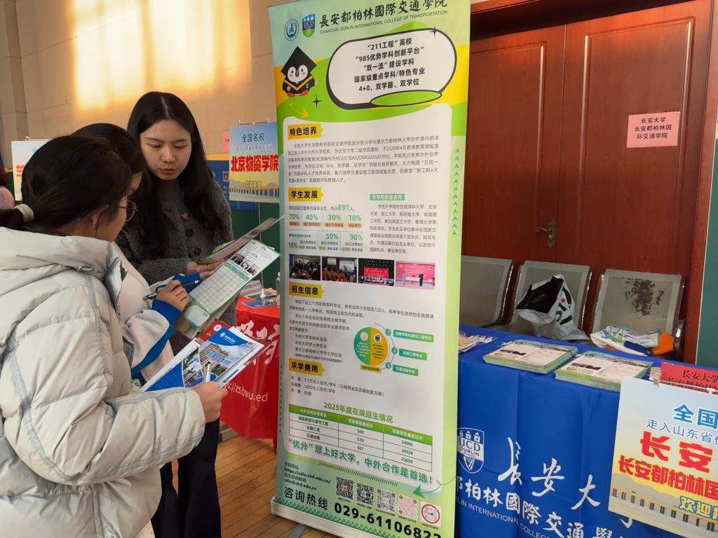 近日,学院先后在陕西西安、山东潍坊开展进校科普及现场招生咨询活动,参加了“全国高校招生科普讲座”“名牌高校入山东省优质高中”“2026年首场全国在陕招生中外合作办学专场咨询会”三场大型招生宣传活动。