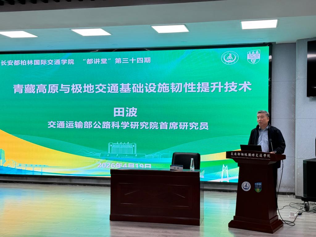 4月19日,学院举办“都”讲堂第34期学术讲座。本次讲座特邀交通运输部公路科学研究院首席研究员田波作专题分享,主题为“青藏高原与极地交通基础设施韧性提升技术”。讲座由院长张久鹏主持,我校相关院系师生共同参与本次讲座。