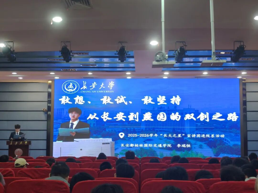 为充分发挥朋辈榜样示范引领作用,营造奋发向上的优良院风学风,3月30日,学院举办“长大之星”宣讲团进院系活动暨“朋辈论坛”第二十六讲。2025级全体本科生、辅导员张力雄、惠亦嘉参加宣讲会。活动由张力雄主持。