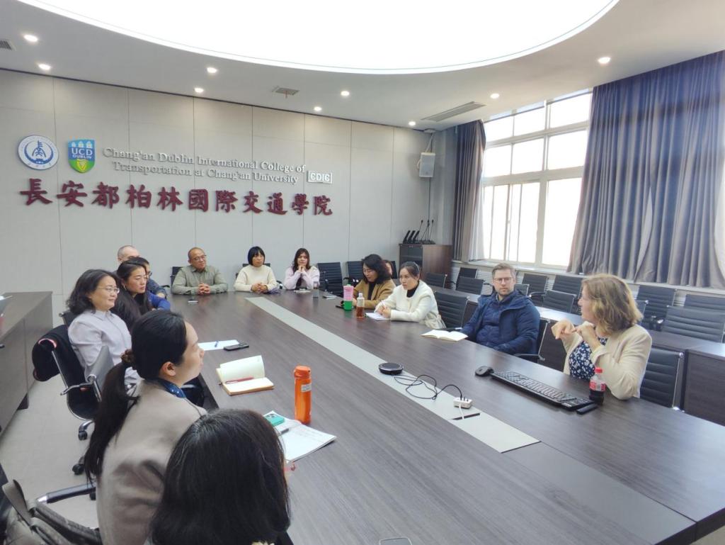 于鸿远四楼会议室召开学院英语教师教学座谈会。会议邀请爱尔兰都柏林大学英语与全球语言中心主任Anna Nunan 博士与学院中外英语教师针对学术英语教学开展交流讨论,学院英语课程负责人 Alex Ruchman 博士主持会议,中外英语教师围绕学术英语课程建设、学生学习特点及AI时代教学应对策略等重点议题展开深入研讨。